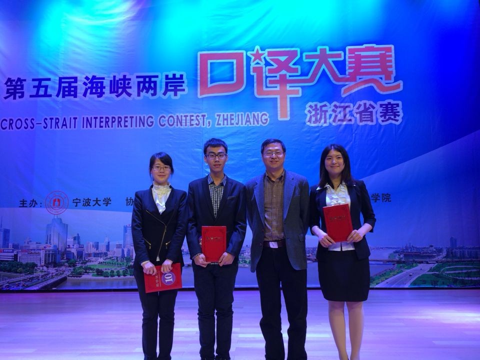 外语学院学子何晨山、钱玲丽同学分别以第一和第二名的成绩荣获一等奖,董樱樱同学以第五名的成绩荣获二等奖。他们将代表浙江赛区参加5月中旬在上海理工大学举行的该赛事的华东地区区级赛。