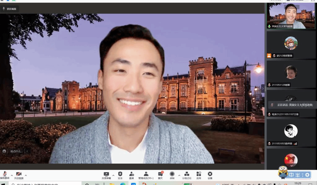 特别邀请到英国贝尔法斯特女王大学翻译学教授、口笔译中心主任David Johnston教授以及女王大学国际办公室处国际合作主管冯艺老师以腾讯会议的形式,为伊人直播