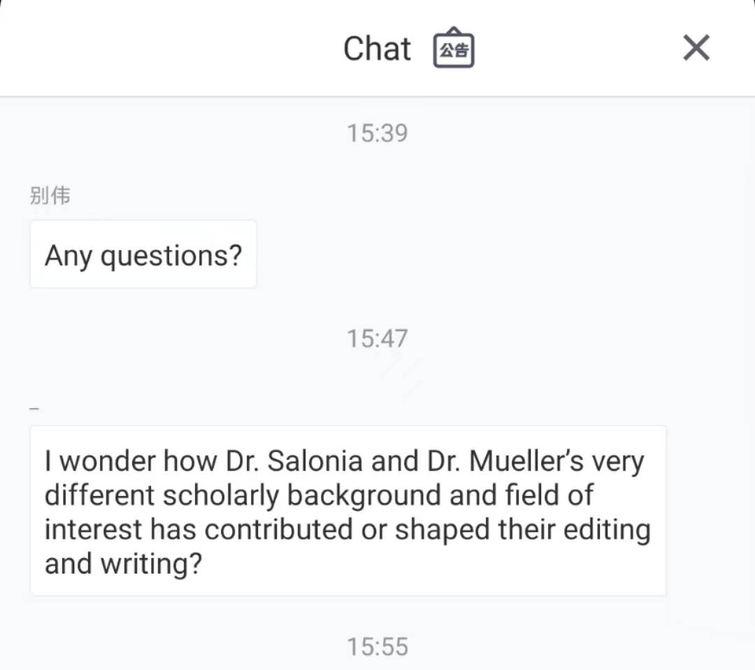 在互动环节,两位教授对不同文化交流方式造成的后果,中世纪西方世界对中国的兴趣所在及原因,中世纪欧洲文明,哥伦布发现新大陆背后的文化交流,旅游写作中的文化误解,18,19世纪东方主义等问题进行了解答,此外,他们对自己来自不同文化背景做研究的原因也做了详细解释。