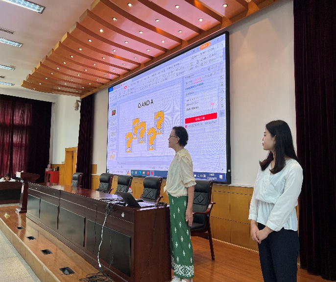 在互动问答的环节,同学们询问Hlide来中国的原因,Hlide外教则风趣地回答道小时候的她就拥有着中国孩子的长相。她认为,从那时候开始,她和中国便结下了不解之缘。在美国工作和生活一段时间之后,她下定决心是时候该来中国了,于是一张飞机票,她就来到了中国。当同学们问道,来中国面对的最大的困难是什么时,两位外教都提及到了语言问题。比如我们的外教Haruka在来中国之前,只会中国基本的问候语,如你好、谢谢等,现在的她,已经逐渐在中国生活的点点滴滴学习更多的中文。虽然外教Hlide对中文词汇和语法拥有一定的掌握力,但她也在实际的运用中,也会因为一些语音语调而闹出一