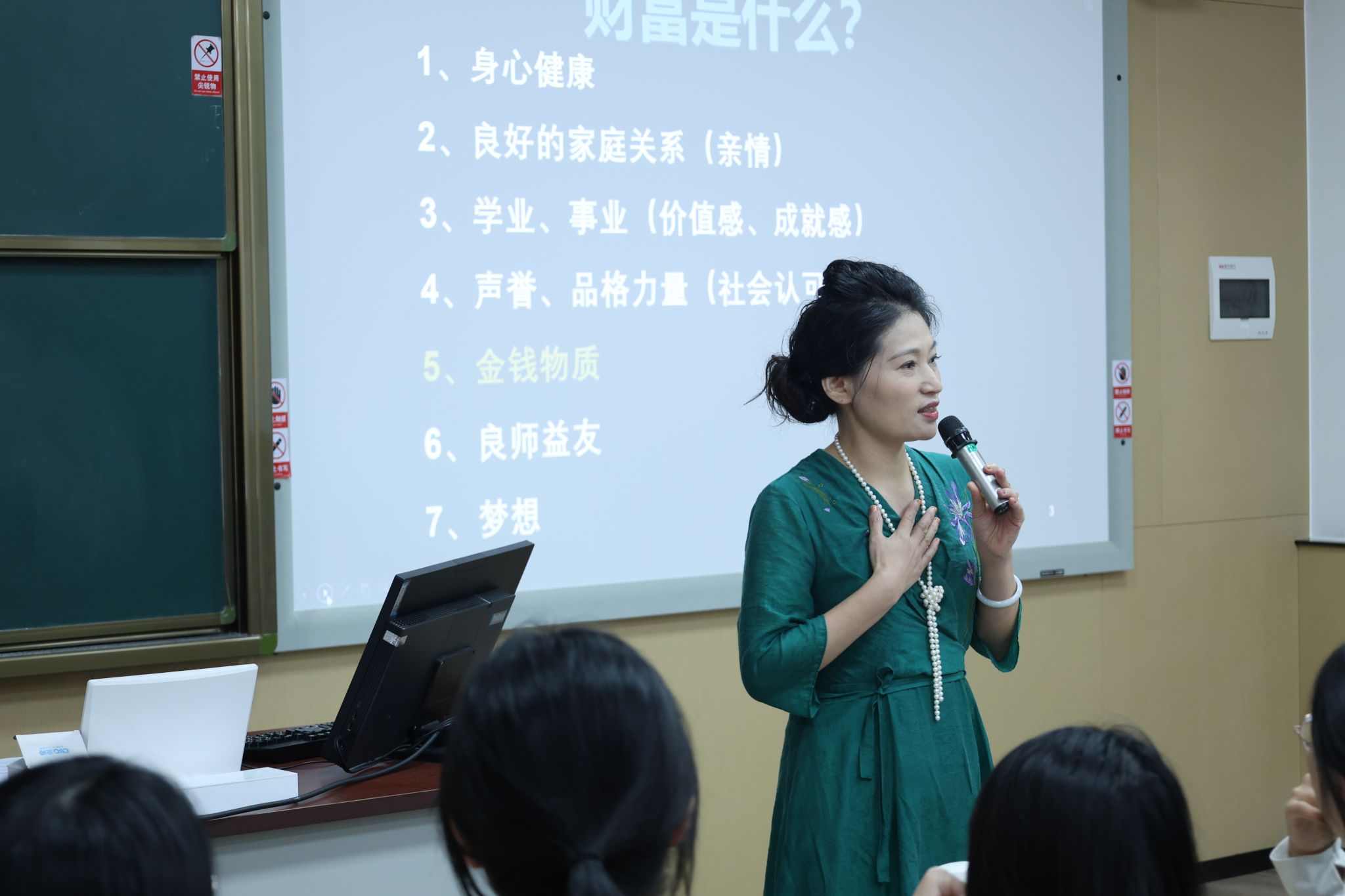 1996级英语专业校友、家业关系赋能专家、关系心学开创人、国家二级心理咨询师组织、家庭系统排列导师、NGH催眠培训导师、坤森心智学院创办人、加拿大曼尼托巴大学Asper商学院访问学者、MBA管理硕士庄雪芬应邀主讲“财富与你的距离”专题讲座。伊人直播
