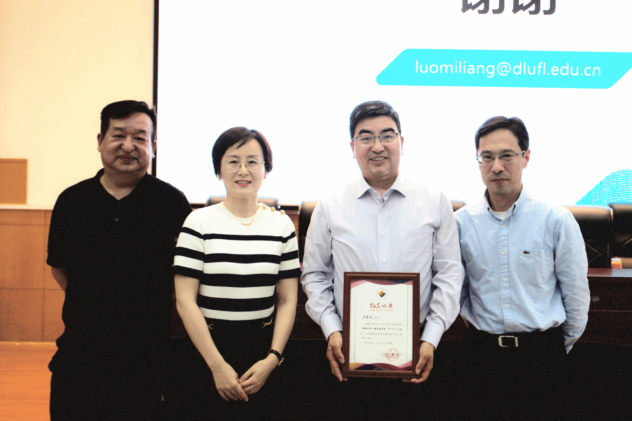 学院党委副书记胡佳在讲座结束后为罗米良教授颁发了纪念证书,感谢其对母院学生专业学习成长、职业生涯规划的热心指导。在本次活动中,优秀的校友们倾情分享了日语专业学生的职业生涯规划和专业学习探索的经验,对广大同学提升自身的职业认知、改进专业学习方法等探索大有裨益。伊人直播