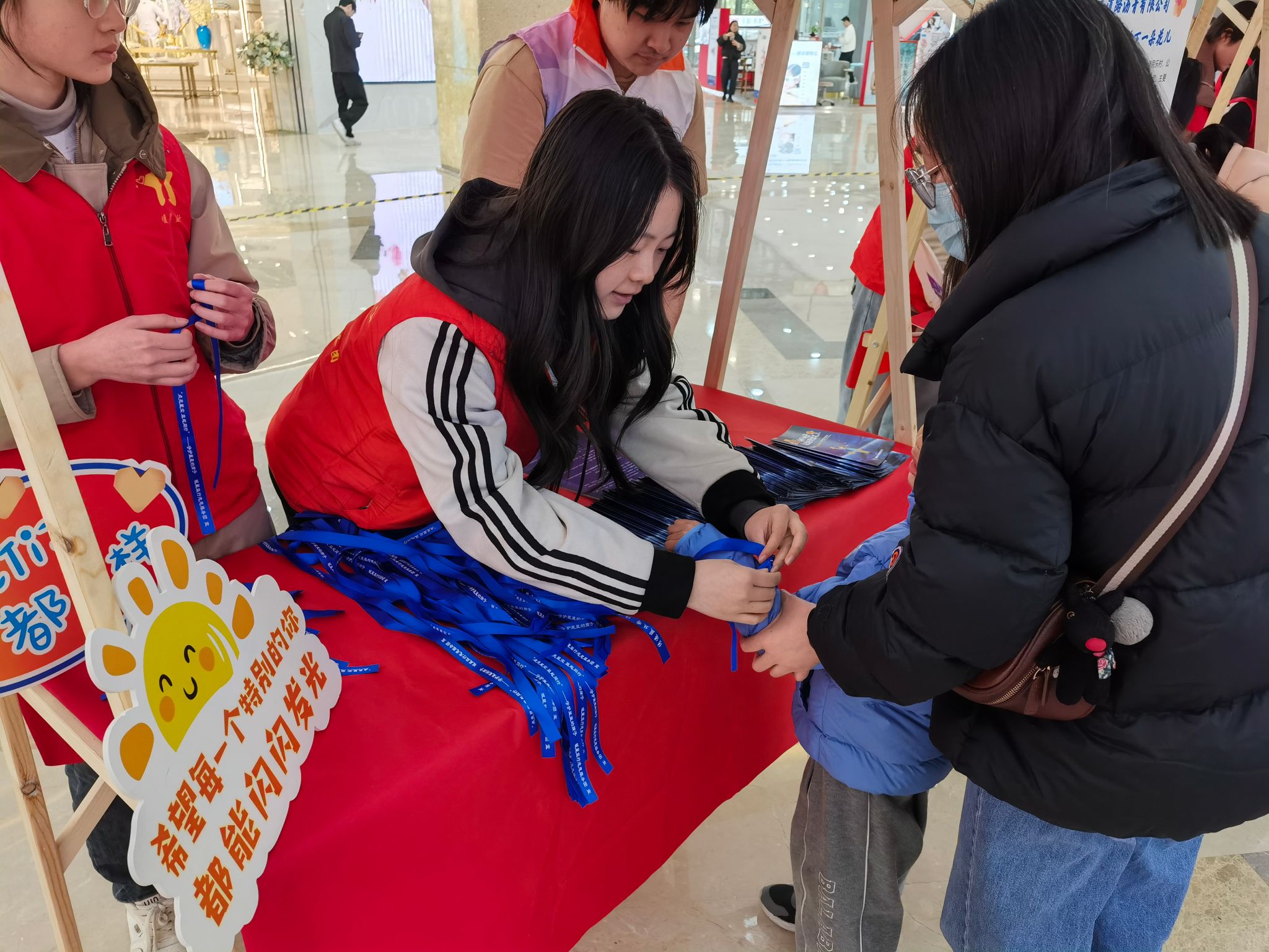 的8名青年志愿者积极参与在宁波万达广场温情启幕的 "为星星种下种子 让善意开出花儿" 主题公益活动,本次活动以沉浸式游园体验为载体,通过科普教育、障碍模拟、反诈宣传等新颖形式,吸引百余名市民参与,搭建起社会大众与孤独症群体的理解之桥。