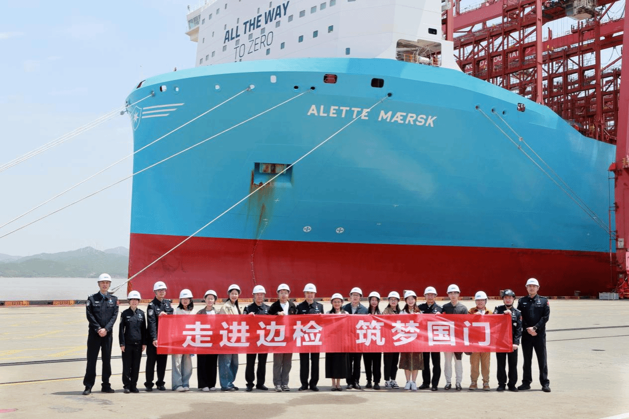在宁波边检站综合执勤四队的精心组织下,与会人员实地考察边检执勤现场,体验专业执勤装备穿戴与使用并登临外籍船舶与船员进行面对面交流,通过沉浸式体验船员们的远洋生活,师生们对国际航运实务和边检工作有了更为直观的认识。