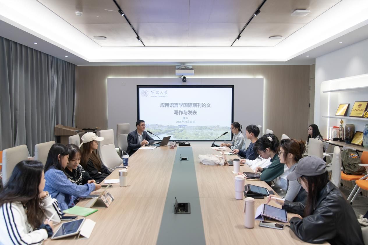 举办“2025年宁波研究生学术节”专家报告会。本次讲座特邀学术副院长、包玉刚卓越学者雷军教授担任主讲。雷军教授以“应用语言学国际期刊论文写作与发表”为题,结合自身求学经历及科研教学实践,为在场师生带来一场内容翔实、视野前沿的学术报告。现场座无虚席,学术氛围浓厚。