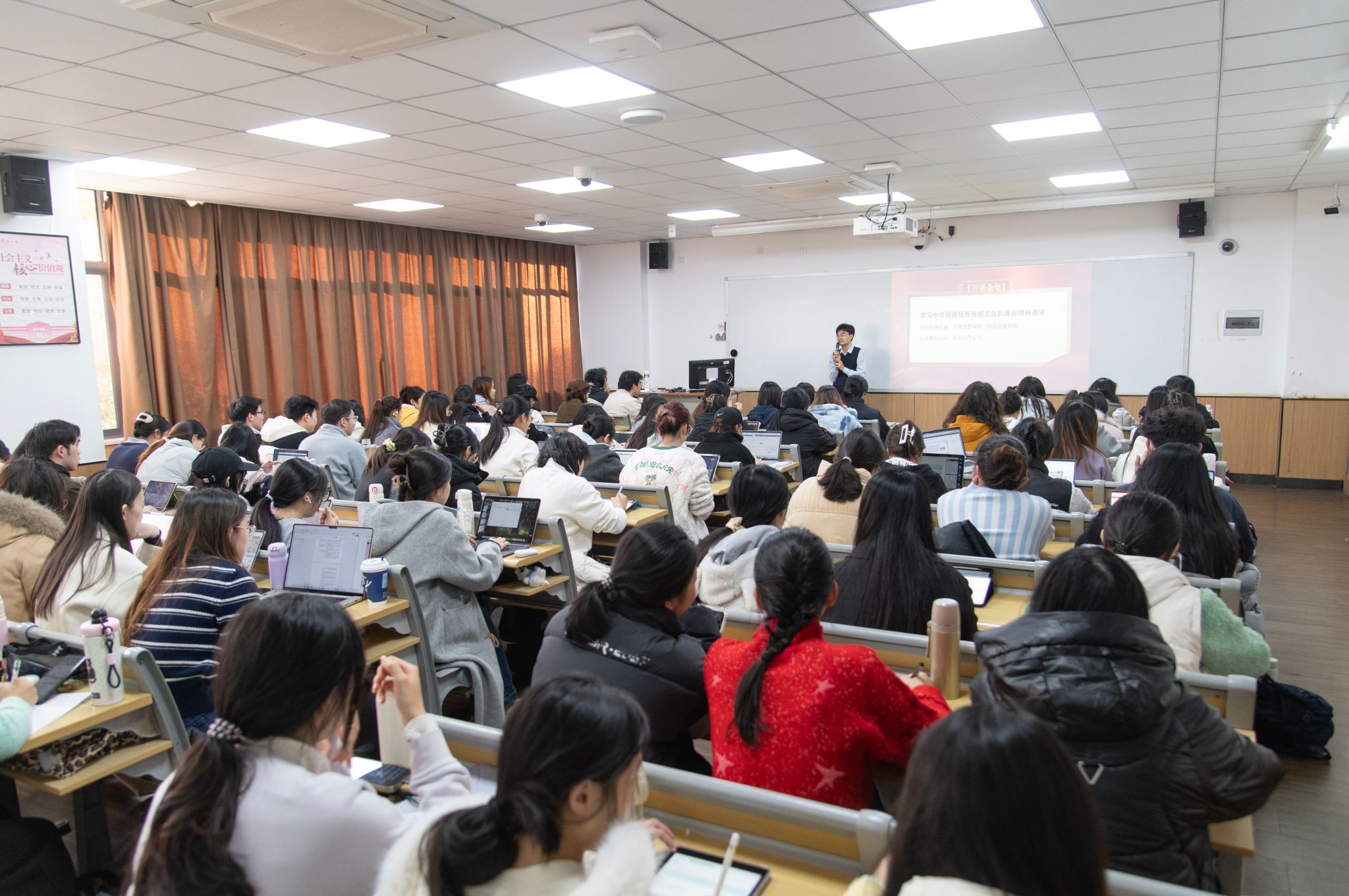 在互动环节,郭主任就“如何选择一生深耕的经典”“传统文化与当代精神困境”等问题与在场学生展开交流。他寄语同学们要“立志、修身、积善、笃行”,在“格物致知、诚意正心”中实现自我成长,在“文化翻译与传播”中实现人生价值。