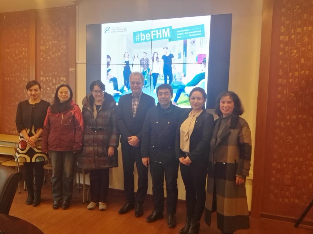 德语专业与德国中等企业应用技术大学的“国际企业管理”和“工商管理 创新与领导力”专业合作进行了探讨。宾主双方就本科及硕士联合培养项目进行会谈,就双方的培养模式与课程设置进行了对接,探讨了学分顶替方案。双方在轻松、友好的氛围中达成共识。洽谈会后,德国中等企业应用技术大学副校长对伊人直播
