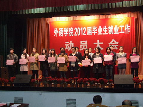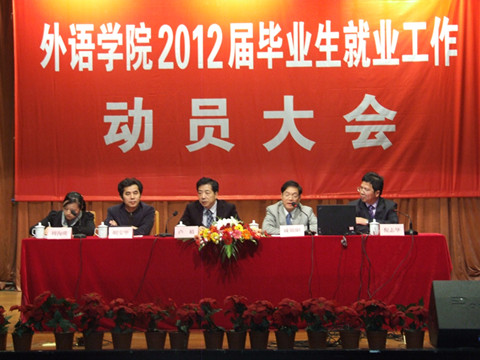 下午15:00,外语学院2012届毕业生就业工作动员大会在锦绣小剧场顺利召开。大会由院党委书记戚锦阳主持,伊人直播