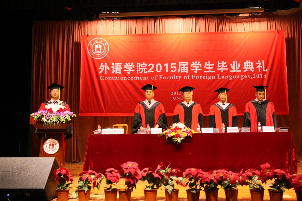 6月5日上午,外语学院2015届毕业典礼在锦绣小剧场举行。外语学院党政领导、毕业班班主任以及学院各系部主任出席,全体毕业生参加。