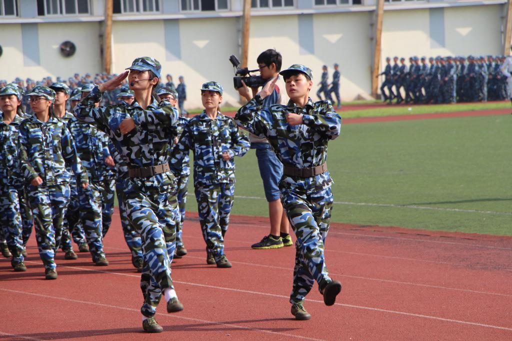 阅兵式上,同学们迈着坚定的步伐通过主席台,每一个动作刚挺有力,立正、稍息、齐步走、正步走,这些整齐划一、看似简单的动作,都需要每一个人反复练习、不断磨合。11天的训练不仅增强了同学们的体质,更凝聚了同学间的情谊。
