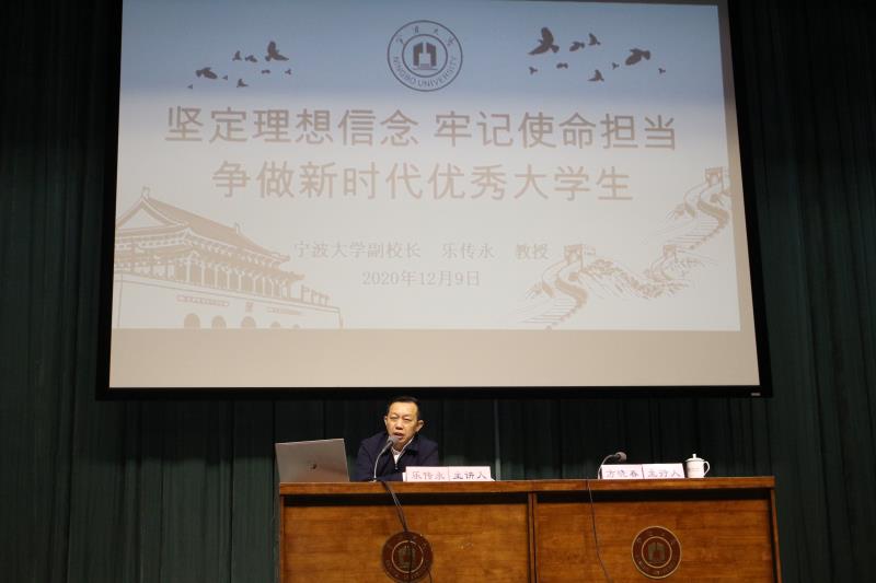 12月9号下午,副校长乐传永教授在林杏琴会堂以“坚定理想信念,牢记使命担当,争当新时代优秀大学生”为主题,为伊人直播