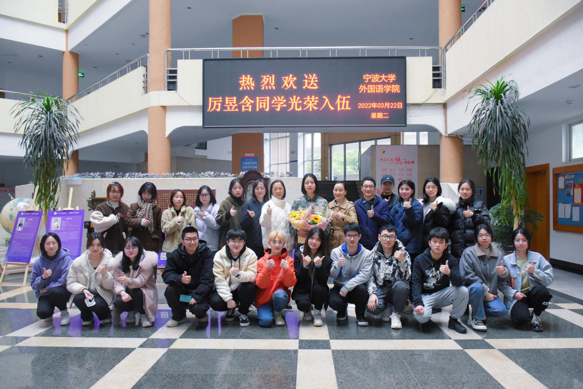 近五年来第二位应征入伍女兵,为外院所有同学树立了榜样,希望她在部队发挥优势,补齐短板,蜕变为刚柔并济的巾帼英雄,同时也希望她保重身体,与学院的“家人们”保持联系。院党委副书记鼓励更多同学投身祖国需要的项目之中,包括研支团、西部计划、两项计划等,希望同学们及时做好规划,把报国志与个人理想充分结合。此外,英语194班班主任、辅导员以及学生代表也表达了对厉昱含的祝福,在随后举行的欢送仪式上,院党委书记寄语厉昱含:“春朝书香四溢,秋末沙场点兵。你是多么酷炫的女生!期待你军营建功,载誉而归!”并送上学院精心准备的礼物。