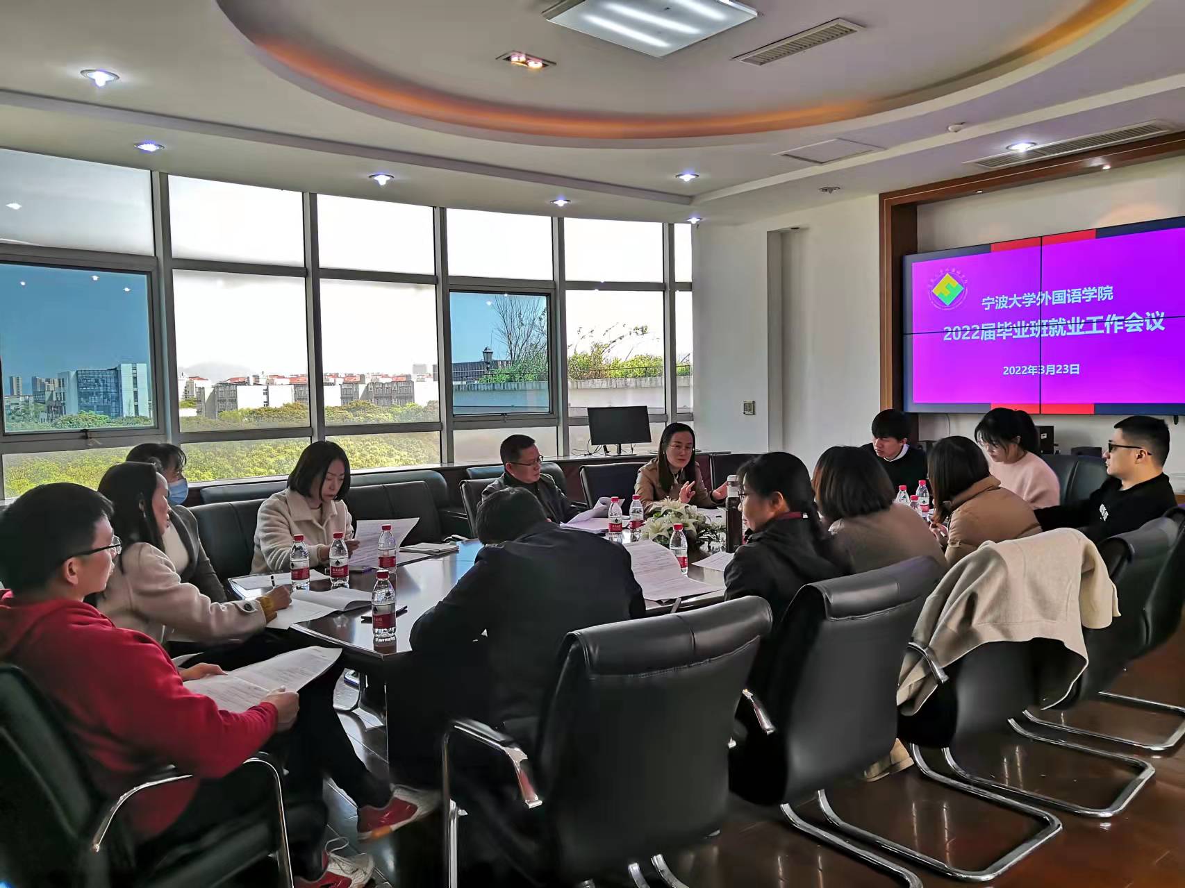 召开2022届毕业班就业工作会议,学院院长、学生工作负责人、国际合作处有关负责人、各系负责人、外事办负责人、毕业班班主任和辅导员参加了会议。
