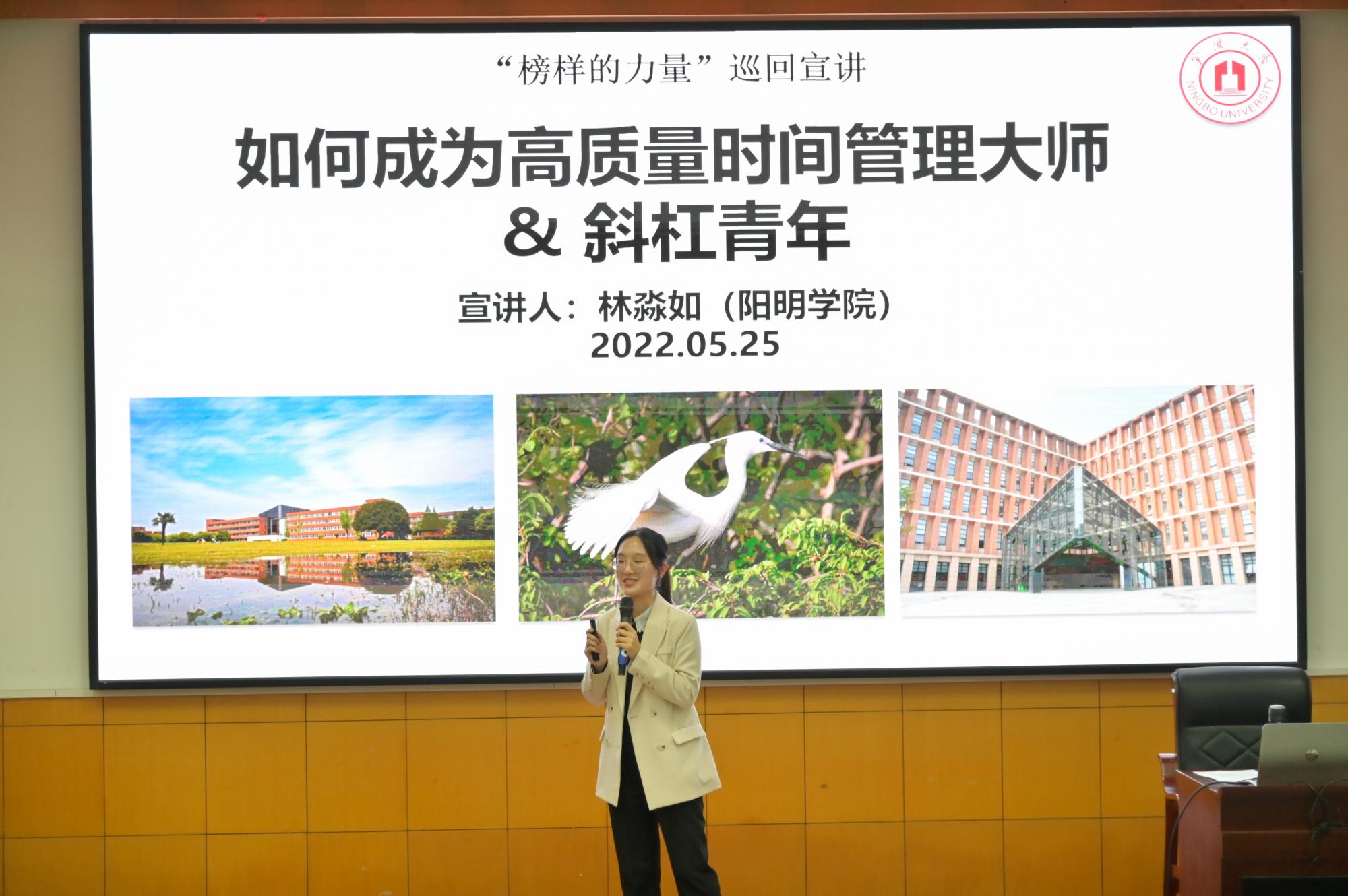 党委学工部牵头成立了第八批“榜样的力量”宣讲团,阳明创新班英语专业的林淼如便是其中一员,她以优异的成绩保研至北京外国语大学,同时还是国家奖学金获得者、“四知”精神的践行者,立志用外语讲好中国故事。