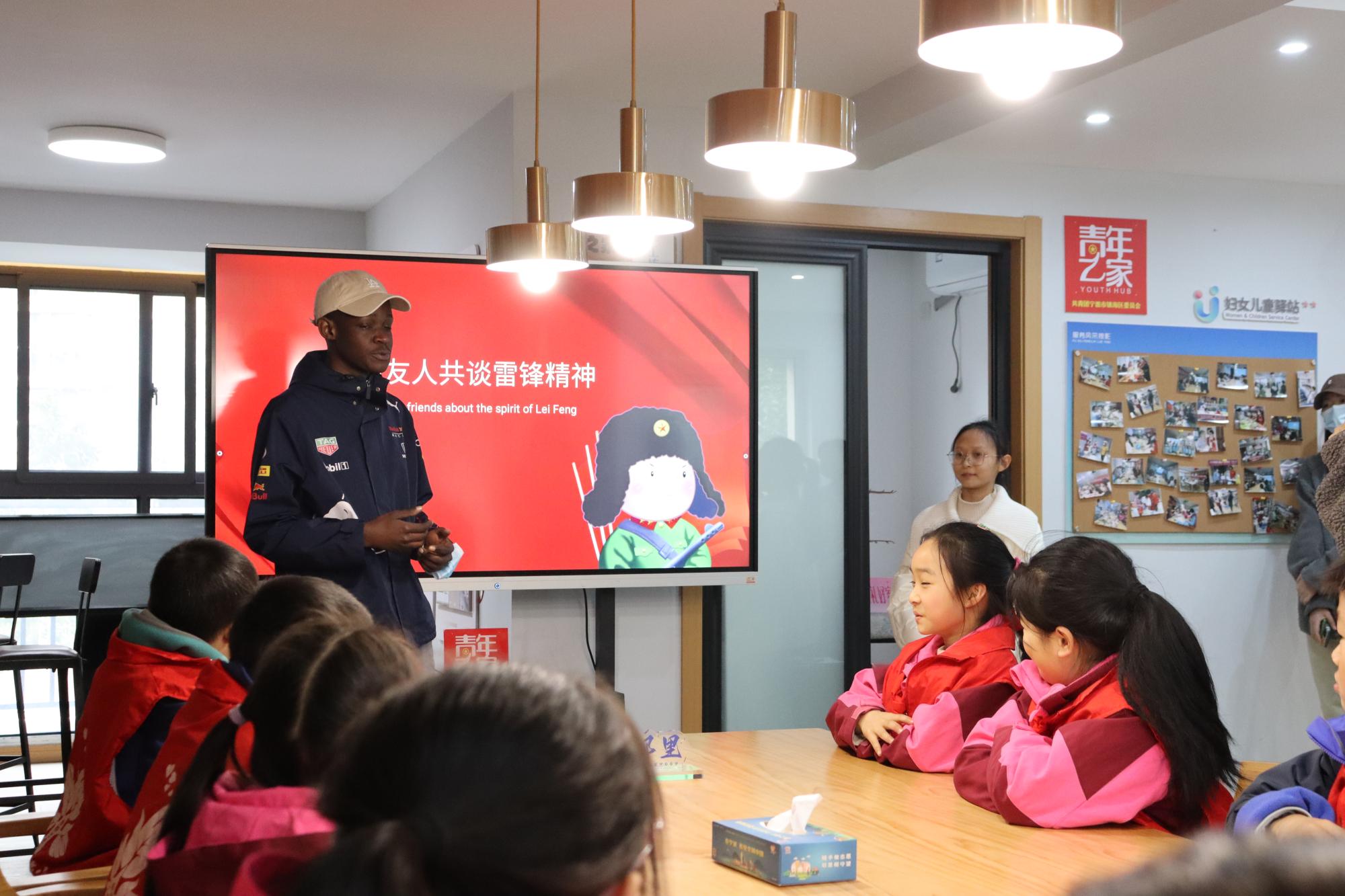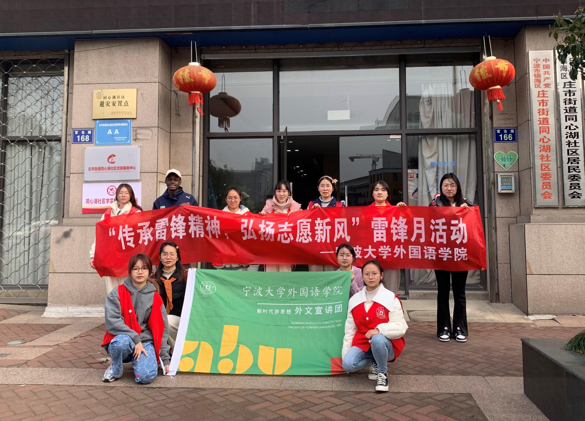 外文宣讲团成员,为国外留学生翻译讲解雷锋精神,并全程参与服务活动。活动受到社区居民和参与师生同学等的一致好评。