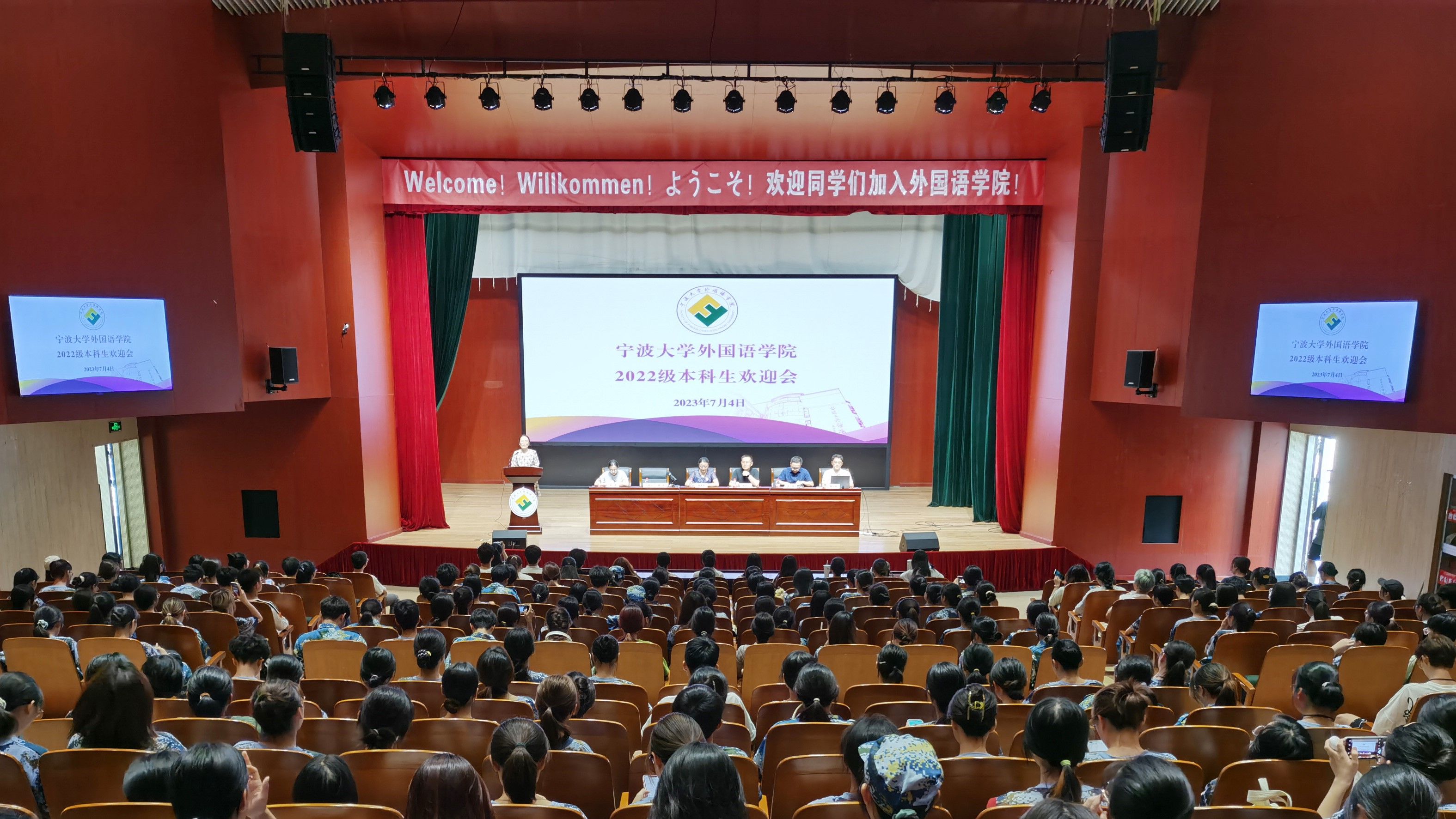 在随后的迎新第一课上,张陟副院长从“自信”“自爱”“自强”三个词语出发,强调了学风诚信的重要性,要求同学们严守“高压红线”。他还就宁大外院各学科的评估结果做了详尽的介绍与解读,希望望同学们规划好自己的人生,充分发挥自身专业优势,扬长避短,向着人生目标不断前进。学院党委副书记胡佳以“送给外院2022级‘新生’的四句话”为题,向即将进入外院学习的同学们提出四个殷切要求:要有宁大外院人应有的气质形象;要有宁大外语人应有的活力和张力;要有中国外语人应有的格局和担当;要努力锻造新时代外语人应有的素养和能力。讲话最后,她期望在座的同学要勇挑外语青年的重担,对外展现一个可信、可爱、可敬的中国形象。