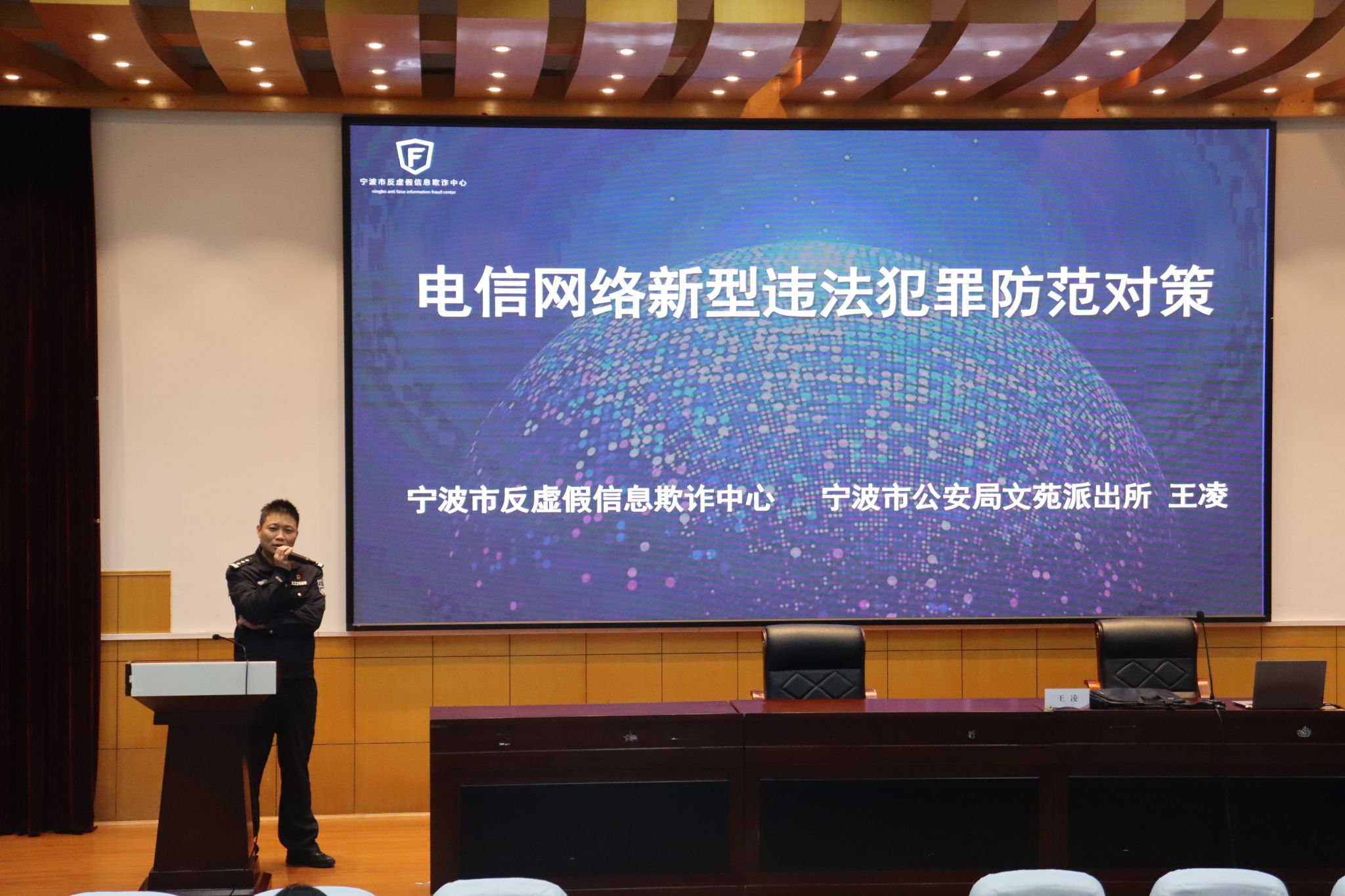 当日,为有效防范和打击电信网络诈骗,提高同学们的安全防范意识和能力,文苑派出所王凌警官还为学院170余名学生代表开展了主题为“电信网络新型违法犯罪防范对策”的专题宣讲。王警官围绕冒充公检法诈骗、冒充熟人诈骗、刷单等诈骗形式,结合真实案例,以生动的语言分析了常见的诈骗套路,从多年的工作经验和心得出发,解释了网络犯罪的生态体系,深刻剖析了电信诈骗的各类环节和人员组织,介绍了易受骗群体及受骗原因。