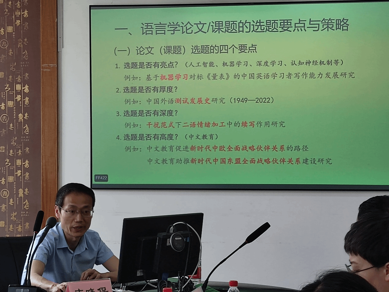 副院长、外国语言研究所所长、认知神经语言学实验室主任韦晓保教授在422会议室以“语言学论文(课题)之选题策略、设计与方法”为题,为伊人直播