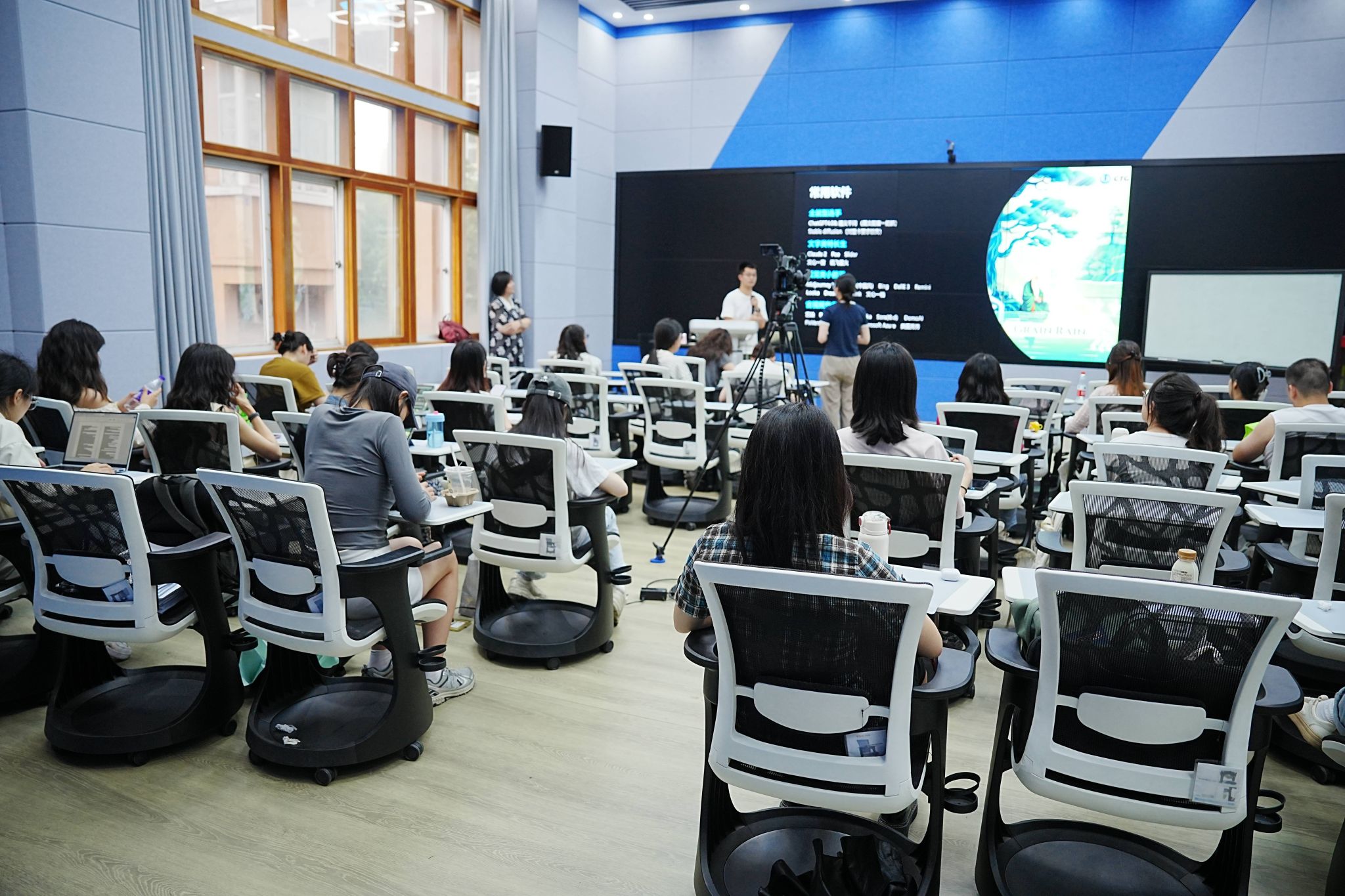 翻译硕士学位点有幸邀请到环球网全球化事业群主编杜京翰,走进“网络新闻编译”课堂,就“AI如何赋能国际传播”进行分享。本次活动由贺莺教授主持,旨在探讨AI在国际传播领域的应用,并展望其未来的广阔前景吸引四十余名翻译硕士研究生参与。