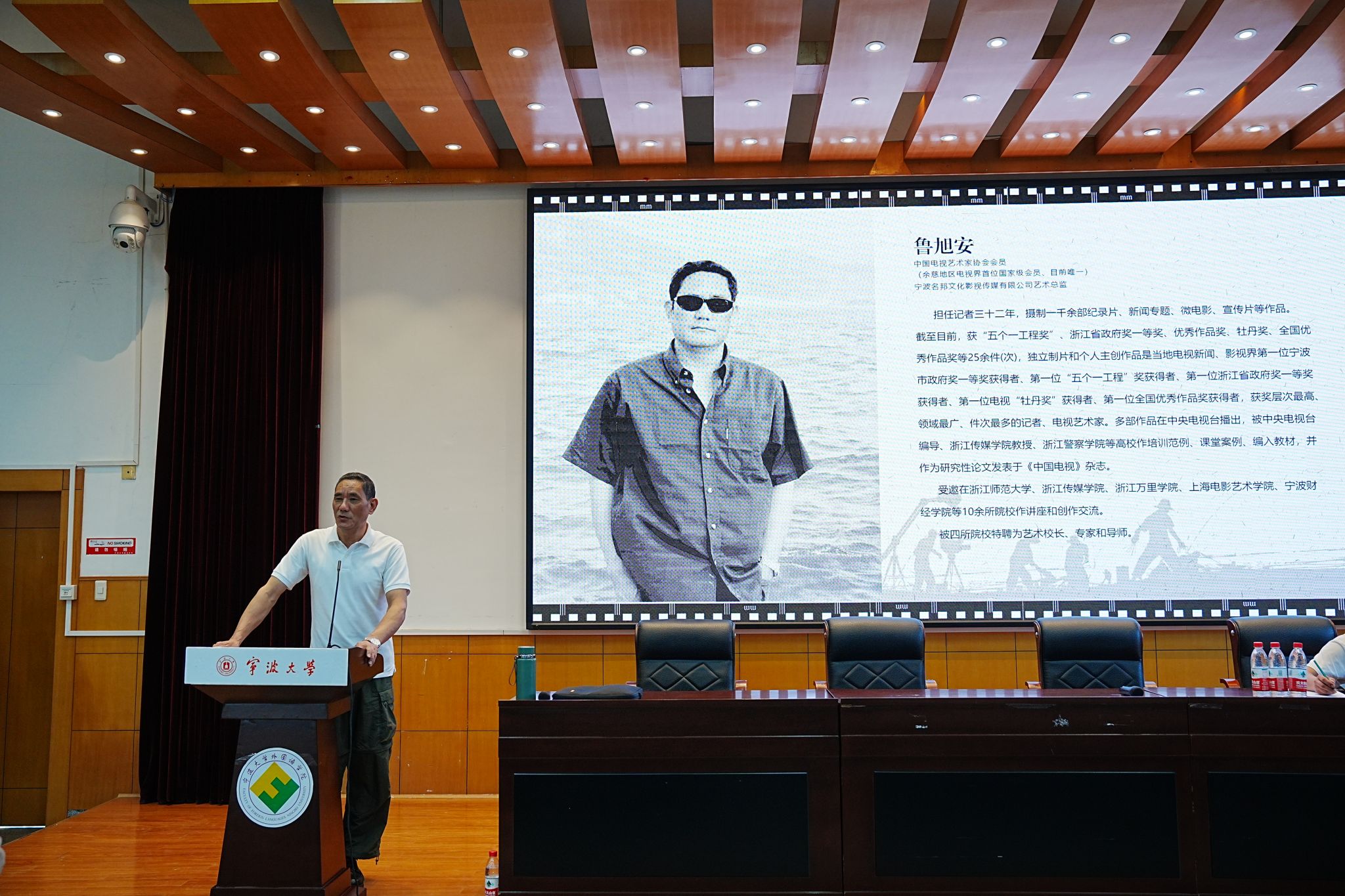 鲁旭安导演,中国电视艺术家协会会员,担任电视编记者三十二年,摄制一千余部纪录片、新闻专题、微电影、宣传片等。曾获“五个一工程”奖、浙江省政府奖一等奖、优秀作品奖、牡丹奖、全国优秀作品奖等20余件。多部作品在中央电视台播出,被中央电视台编导、浙江传媒学院、浙江警察学院等高校作培训范例、课堂案例、编入教材。