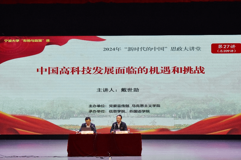 10月30日,副校长戴世勋在林杏琴会堂以“中国高科技发展面临的机遇和挑战”为主题,为伊人直播
