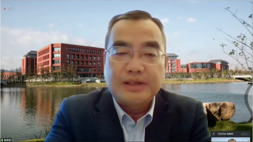 副校长姚菊明致开幕辞,对本次浙江赛区总决赛的顺利召开表示衷心的祝贺,对各位专家评委以及参赛选手表示热烈的欢迎!他指出,今年的赛事筹备经历了诸多曲折,最终在线上顺利举行要感谢赛事的组织者、参与者以及所有工作人员。今年演讲大赛的定题演讲题目为“China’s Wisdom for the World”(构建人类命运共同体:中国向世界贡献的智慧),在党的二十大召开之年这个题目非常有意义。中国是一个有着悠久文明历史的国家, 其文明绵延至今而经久不衰与中华民族特有的丰富智慧是分不开的。作为当代大学生理应从中华文明的悠久传统中汲取精华,在“理解中国、沟通世界”的过程中实现自己的价值。