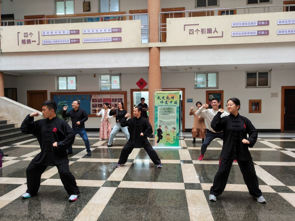 在基本招式动作的学习之后,老师们互相交流探讨,相互“切磋”,在欢畅的氛围中既锻炼了身体,又放松了心情。