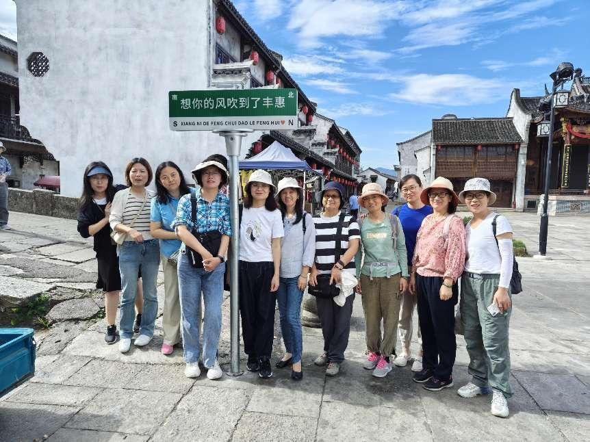 一大早,伊人直播 分工会的老师们抵达位于绍兴市上虞区的丰惠千年古镇,便迫不及待地打卡了“想你的风”丰惠桥一座丰惠城,半部上虞史。丰惠自古人文鼎盛,史不绝传,流传着诸多历史美丽故事。踏上斑驳的石板路,老师们感受着脚下千年古镇的厚重沉淀浸润在休闲与宁静中,来一场文化的洗礼。