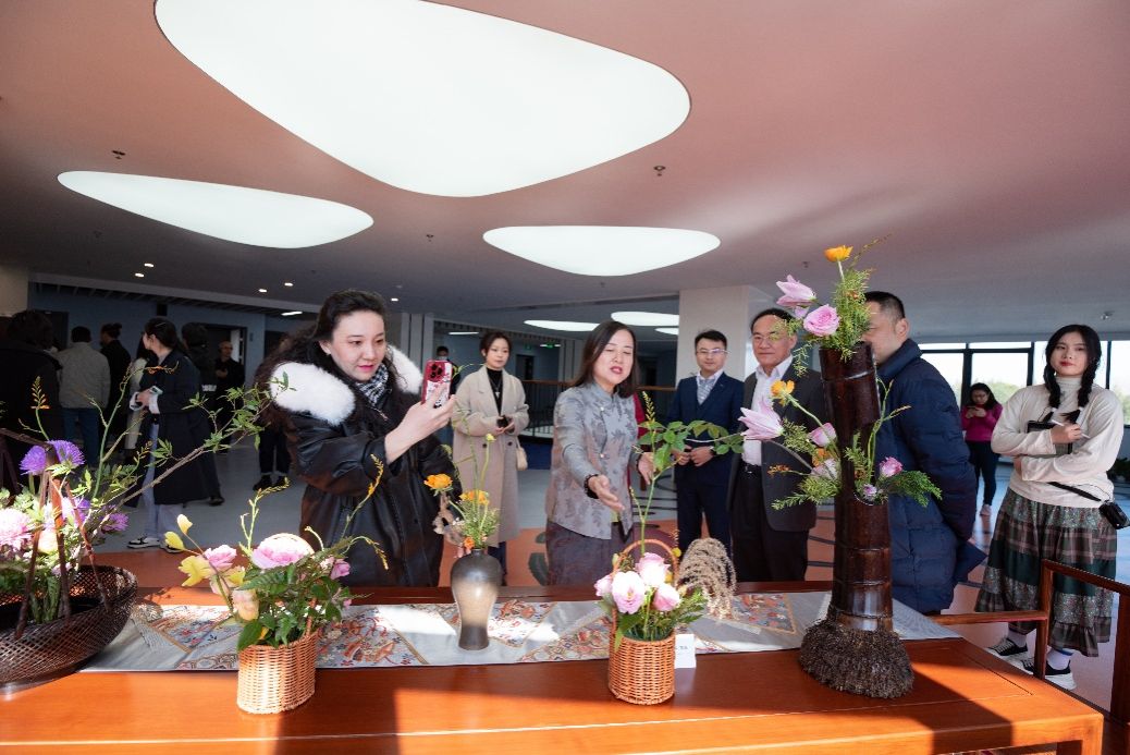 Adding to the cultural feast, Associate Professor Lin Yan's team of Chinese and international students presented a visual spectacle with their meticulously crafted Zhejiang-style flower arrangements. These arrangements not only showcased the essence of traditional Chinese flower arranging but also embodied Ningbo University's teaching philosophy of "Nurturing the Soul with Beauty, Enlightening the Mind with Culture." The event fostered mutual learning and exchange among students from diverse cultural backgrounds, highlighting the crucial role of international aesthetic education in enhancing understanding and respect.