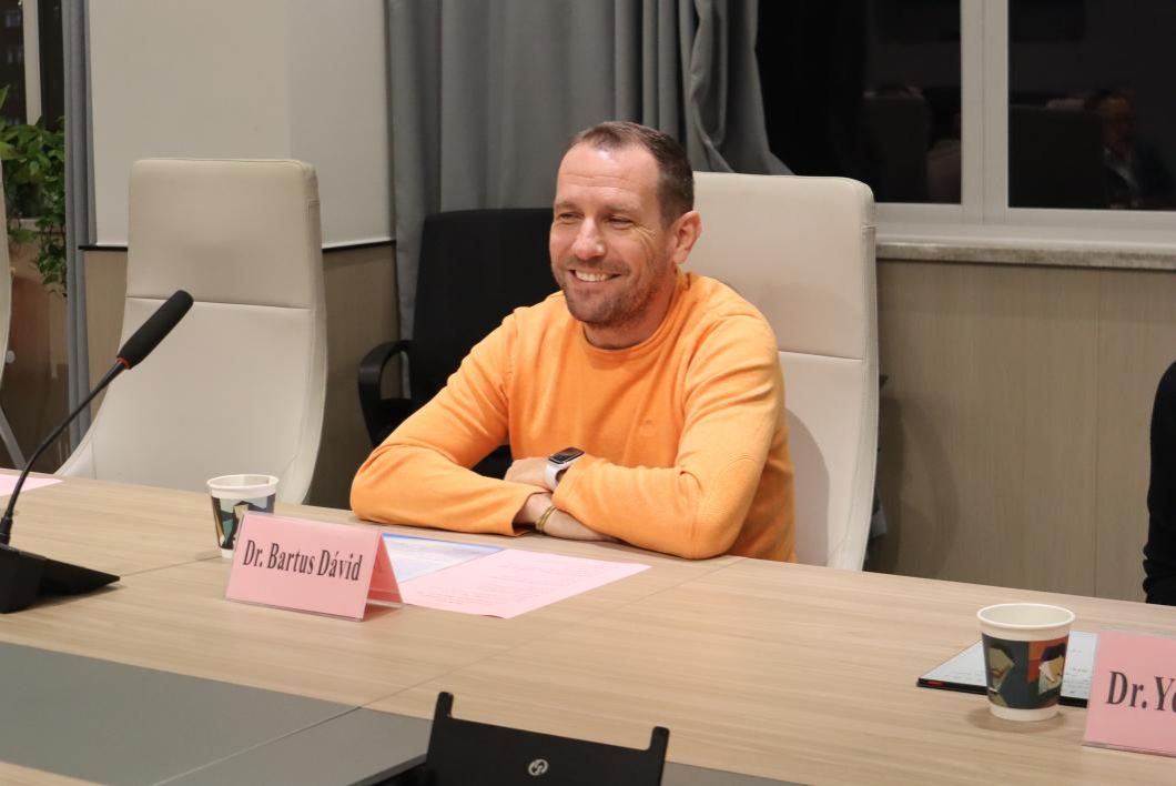 会谈中,罗兰大学文学院院长 Bartus Dávid博士详细介绍了罗兰大学的悠久历史,并重点阐述了其人文学院作为该校第一大学院的显著地位与学科优势。他特别分享了学院在语言学科、人文学科领域的设置,以及这些学科与人工智能、商贸企业融合发展的创新实践。其中,罗兰大学新近开设的“跨文化商务交际”硕士项目引起了与会者的浓厚兴趣。David院长指出,该专业深度融合语言学科与商学学科,旨在培养适应全球化商贸需求的复合型人才,不仅在匈牙利本土发展态势良好,也正积极寻求与海外高校的合作机遇。这一合作方向与伊人直播